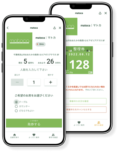 LINEに呼出通知を送れる整理券システム「matoca|マトカ」は、「登録操作はめんどくさい」というお客様と「待ち時間を有意義に使って欲しい」という店舗様の想いを解決します。